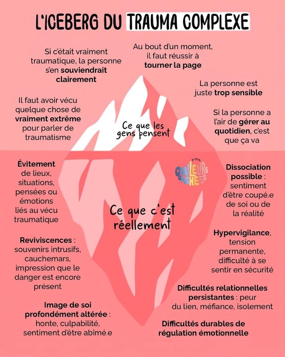 - Image de soi profondément altérée : honte, culpabilité, sentiment d'être abîmé.e