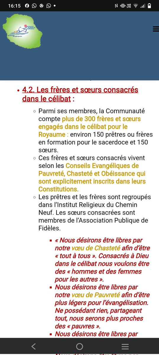 « [les consacré-e-s] suivent les Constitutions de l'Institut religieux du Chemin Neuf ».